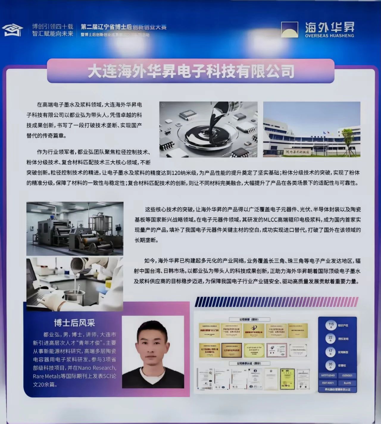 通過產(chǎn)學(xué)研不斷深耕,海外華昇已獲得知識產(chǎn)權(quán)共計100項,其中授權(quán)發(fā)明專利22項、實用新型17項、軟件著作權(quán)35項,注冊商標(biāo)3項。同時,海外華昇還通過了ISO9001/ISO14001/RoHS/IATF16949認(rèn)證,海外華昇也是國內(nèi)首家通過汽車行業(yè)質(zhì)量管理體系IATF16949認(rèn)證的電子漿料企業(yè)。